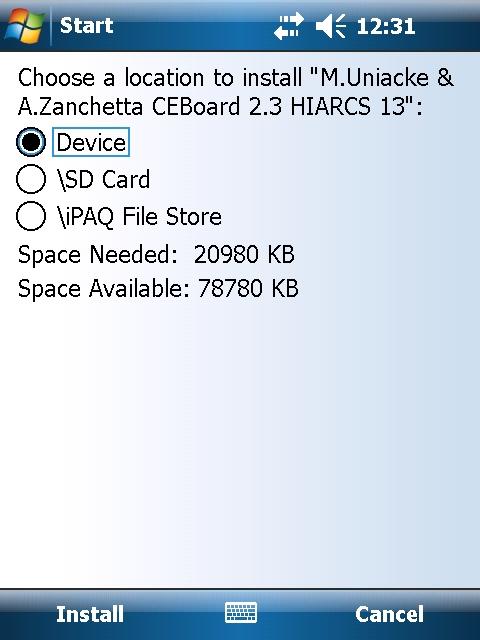 How to Install CEBoard HIARCS on your Pocket PCFor most customers questions 1 is probably the most relevant and certainly for PC users the easiest. Questions 2 and 3 only apply to CAB file installation which requires you to copy files to the Pocket PC yourself.