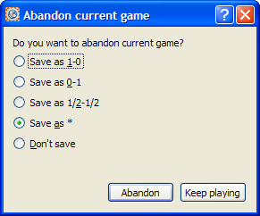 - Save as * - Game will be saved as an unfinished game (no result assigned)