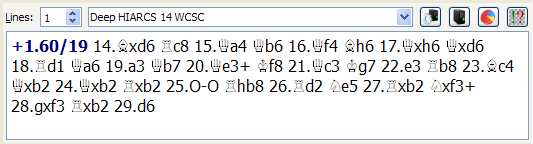 You can see the expected line of play has been added to the Game Notation with the evaluation and depth of search. The evaluation and depth of search is added after the first move of the line so it is clear at which point in the line the evaluation was computed.