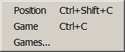 This submenu allows you to copy the current Position shown, the current Game or a selection of Games...