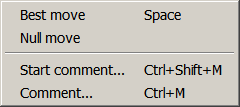 - Start comment.... - this allows you to insert a text comment before the first move of the game. It will bring up an Edit comment dialog.