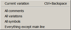 - Current variation - this option allows you to remove the current variation shown in the game notation. It has no effect on the main line of the game, it only affects variations.