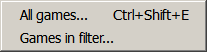 This option allows you to Export games to a new database or to export them to a PDF file. You can either export all games in the current database or only the games in the current filter. An Export games dialog will open so you can set the new database name and format (PGN or PDF).