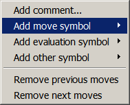 Please note setting a move symbol replaces any existing symbol present. You can also enter the symbols using the keyboard, for example ! enters !, !? enters !? etc.