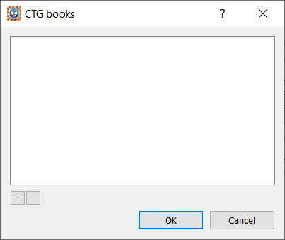 The + button is for adding CTG books, the - button is for removing the current highlighted book.