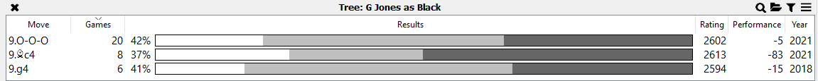 We can go further open the Tree Explorer and click the toggle between database and filter and we can then see a Tree of games played by this Dragon specialist and the moves and stats of their played repertoire.
