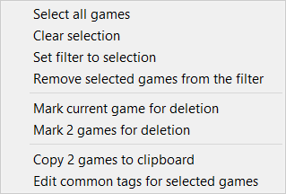 - Copy 2 games to clipboard - all ticked games are copied to the clipboard, you may want to paste them into a different database for example