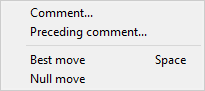 - Preceding comment.... - this allows you to insert a text comment before the current move of the game. It will bring up an Edit comment dialog.