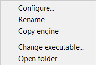 You can perform a number of operations on engines by right click the engine you get this pop up menu: