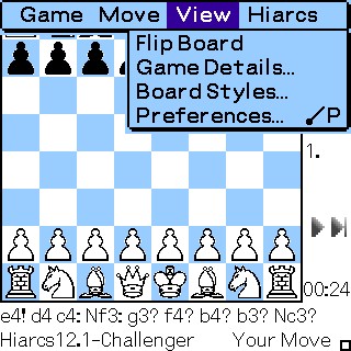 The Preferences screen allows you to configure the more general preferences and various other options. The rating is maintained from the games you play against Hiarcs. It is an estimate but its accuracy improves the more games you play. You can select the players in the game and this effects the role played by Hiarcs. You can set: