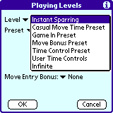 | Infinite level options including Sparring levels, casual time levels, time controls including Blitz, Fischer, and traditional time controls. |