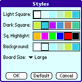 | 3 different board sizes and screen styles, medium, large and full screen including a move list. |